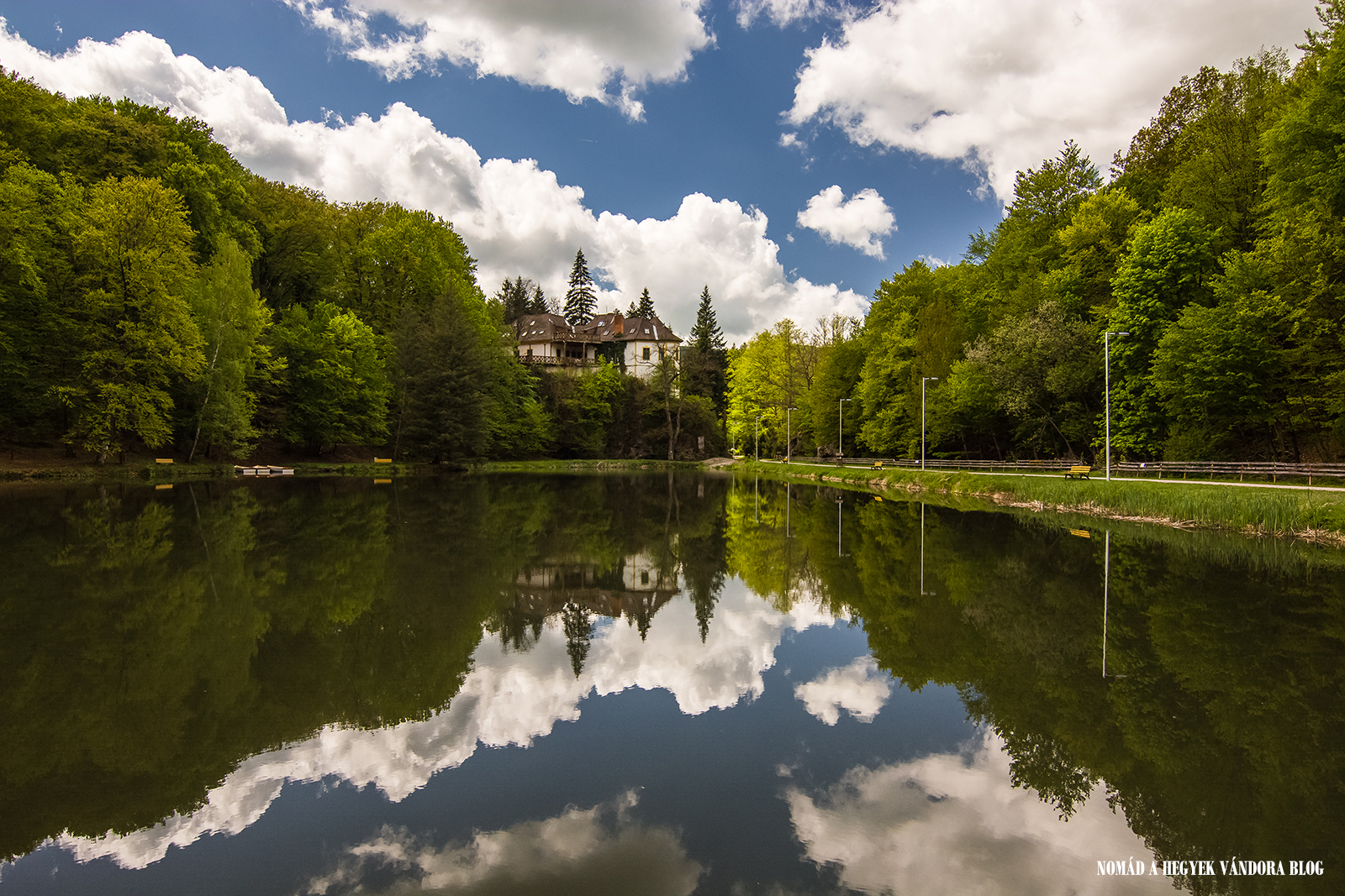 Gyönyörű szép, igazi kiránduló idő volt. Fent a bal sarokban a Rostallói kulcsosház, lent a jobb sarokban pedig a Kőkapui üdülő látható |