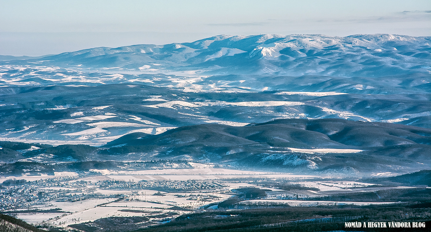 Kelet felé tekintve a Mátra középső tömbje látható: Óvár, Ágasvár, Galyatető, Kékestető, stb. |