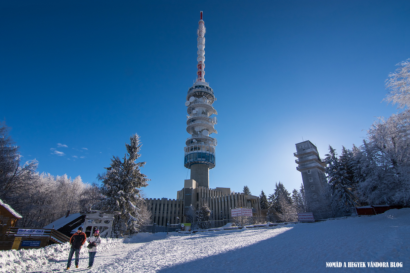 Vasárnap reggelre gyönyörű napsütésre, és friss, ropogós fagyra ébredtünk. Eldöntöttük, hogy felmegyünk a Kékestetőre, és az ország tetején található TV torony kilátó teraszába. Kora délelőtt még simán feljutottunk, de miután lejöttünk, már lezárták a személygépkocsik elől a Mátraházáról Kékestetőre felvezető utat, mivel nagyon korlátozott a parkolóhelyek száma fent, ha beindulnak a téli sportok kedvelői a fenti pályákra. Ilyen esetben csak gyalog, vagy buszokkal lehet feljutni a Kékestetőre. |