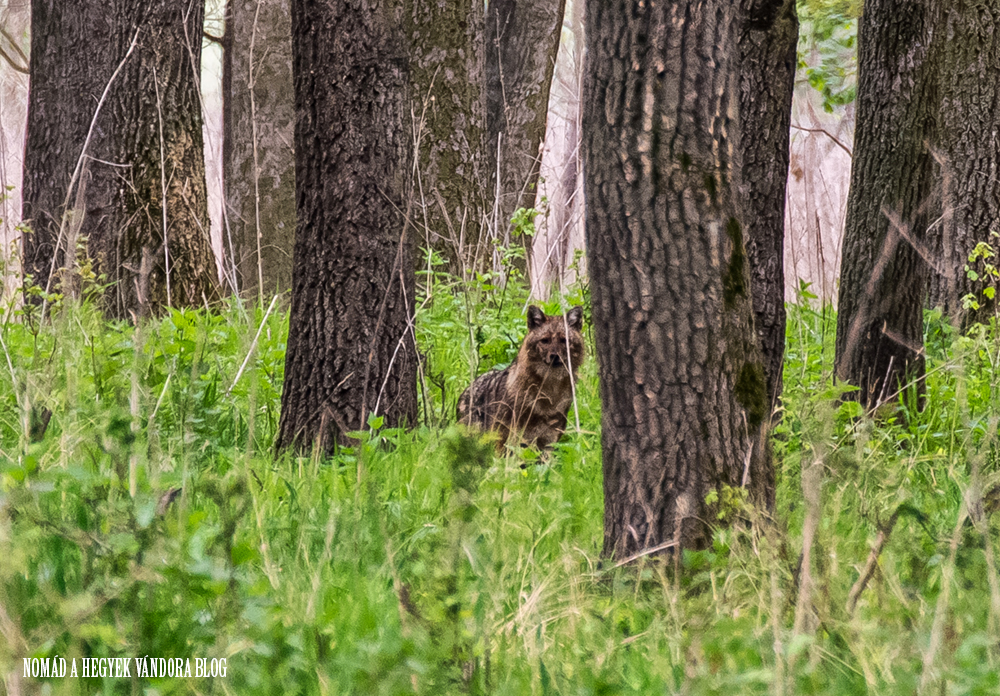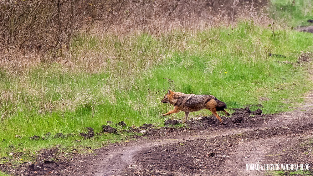 S még egy érdekesség, alig egy órányi járásra a medvehagymás erdőtől. Bár hosszú évek óta járjuk ezt az erdőrészt, de még sosem láttunk itt nádi farkast -aranysakált- bár hallottunk róla, hogy van, de azért nem éppen gyakori esemény az, hogy lencsevégre is kaphatjuk. Csupán néhány másodpercig láthattuk, egy nagy kört téve megkerült minket és eltűnt mint egy szellem. Csak néhány képet volt lehetőségem készíteni róla, túl messziről, túl gyorsan... de legalább sikerült róla fotót készítenünk.