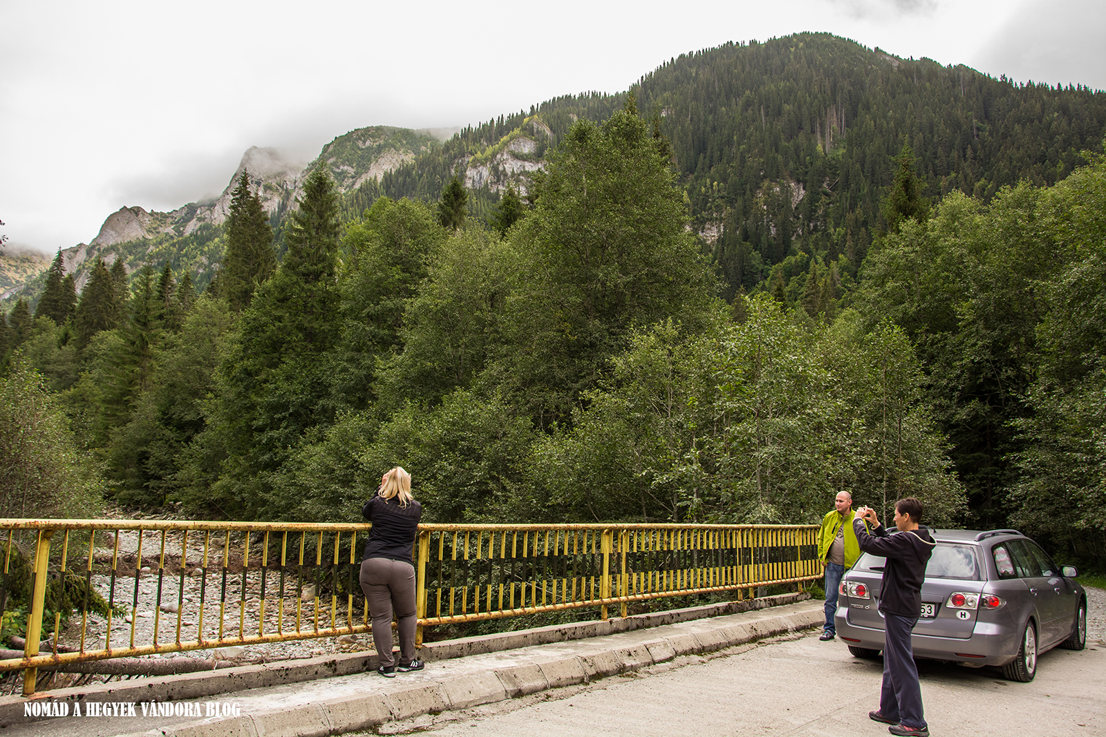 Pihenőkkel együtt kényelmesen bő 4 óra alatt ideértünk. Eddig semmi gond az utakkal. A gát végén kis bódé, jelképes sorompóval. Itt fejenként 10 lej a belépő a nemzeti parkba, mely 7 napig érvényes. Az autóért most külön nem kellett fizetni.