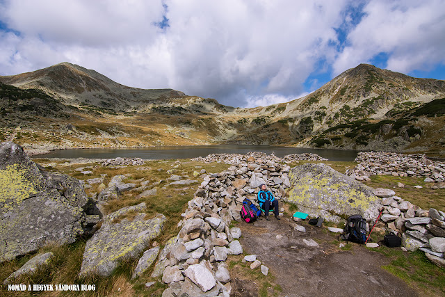 | És igen, felértünk, itt a Bukura-tó. 2040 méteres magasságban járunk, körülöttünk 300-500 méterrel magasabb csúcsok, hágók, nyergek.... |