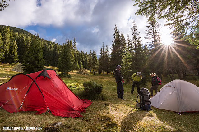 Egyébként jól telt az éjszakánk, csendben és nyugalomban. A sátrakban +8 fokot mértünk hajnalban, ami teljesen normális volt ebben az évszakban és magasságban. A mi csapatunkon kívül csak egyetlen másik sátor volt a réten, ilyenkor már nem jellemző a nyáron tapasztalható nyüzsgés. Viszont a hegyimentők még itt vannak a rét felső végében található házban. Vízvételezési lehetőséget is a ház mögött találhatunk.